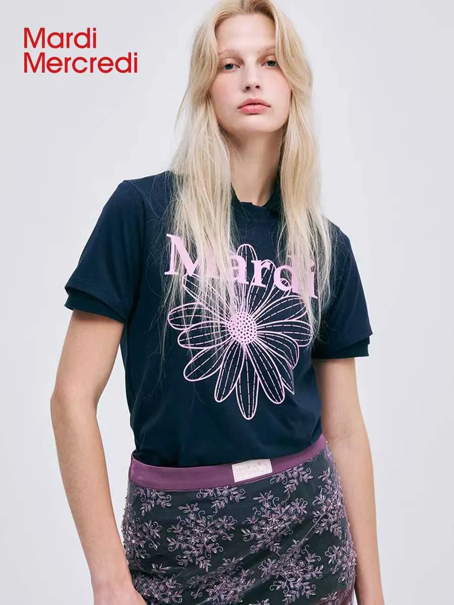 CROPPED TSHIRT FLOWERMARDI_CHARCOAL PINK